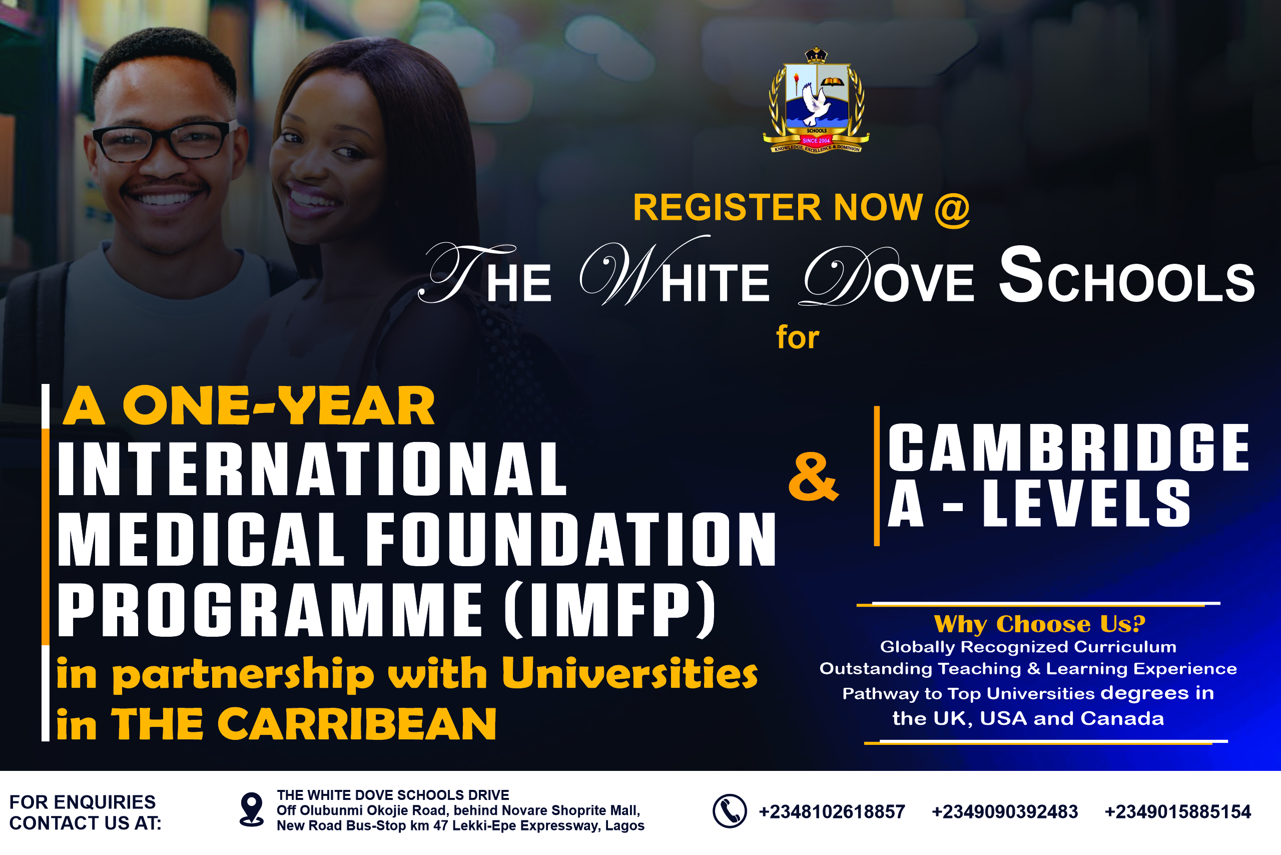 Join the ranks of successful alumni who are making remarkable contributions across industries and continents. At The White Dove Schools, your future begins now.